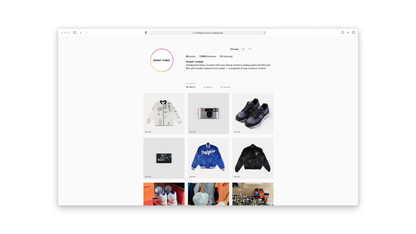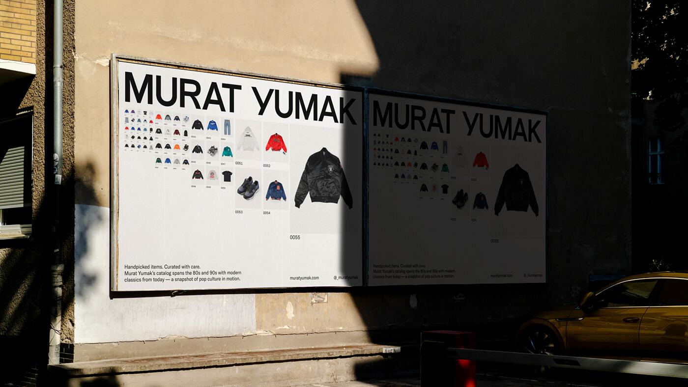 Murat Yumak, a passionate garment, sneaker and design object collector, asked us to create a concept for displaying and selling his archive of vintage items—a place for likewise minds to find inspiration, knowledge, and their personal holy grail to purchase. Contrary to endless hauls, container-sized shipments, and quick sells via stories and reels, that took control of the vintage market.
