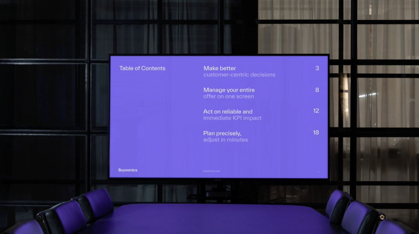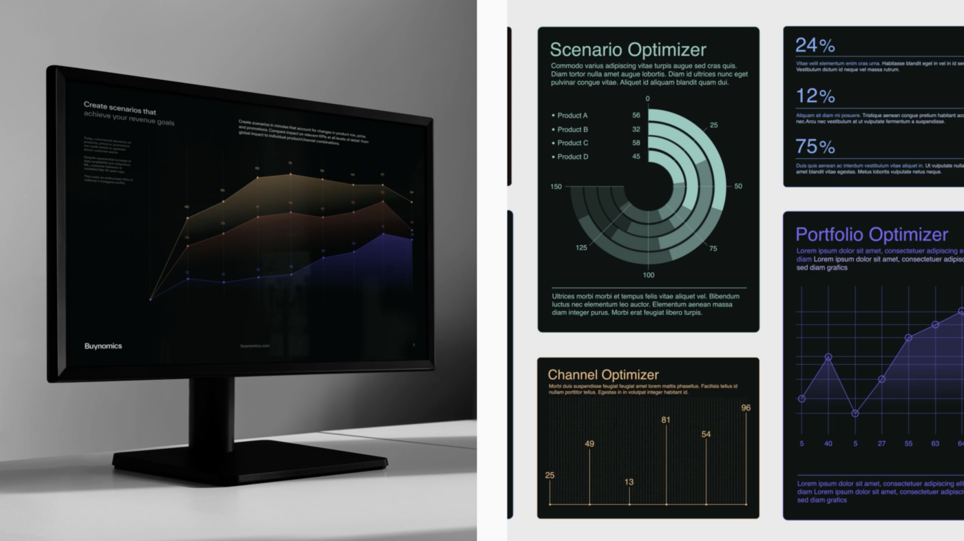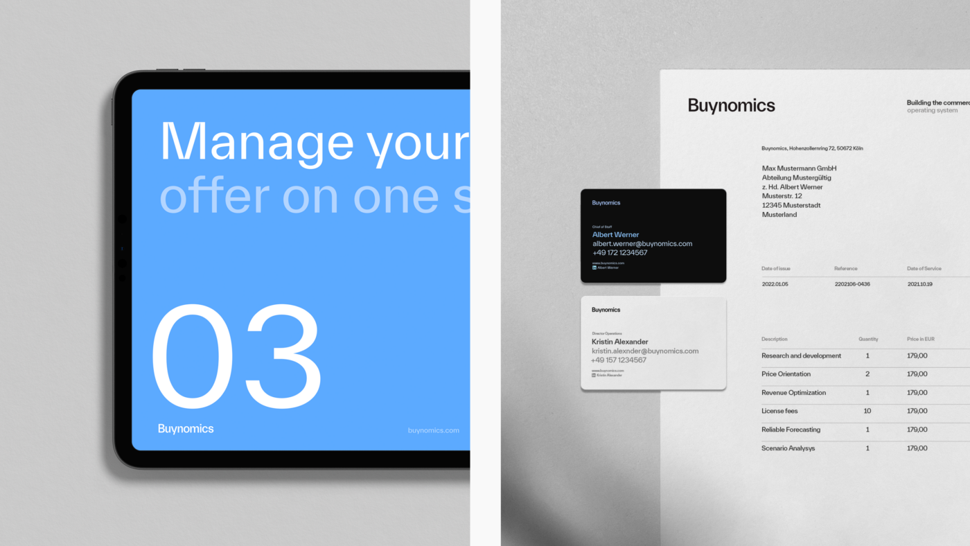 Buynomics is an End-to-End revenue optimization service for various industries. Its unique and innovative Virtual Customer Technology enables fast and highly accurate commercial decisions by creating limitless virtual customers that act just like real ones, foreseeing consumer behavior transparently and straightforwardly. As part of upcoming funding rounds that underline Buynomics’ growth and constant development, we were invited to revise the initial brand positioning and corporate identity. The objective intended to sharpen the brand image, clarify the brand language and tone of voice and maximize the potential of Buynomics, translated into visual elements that reflect the company’s purpose.