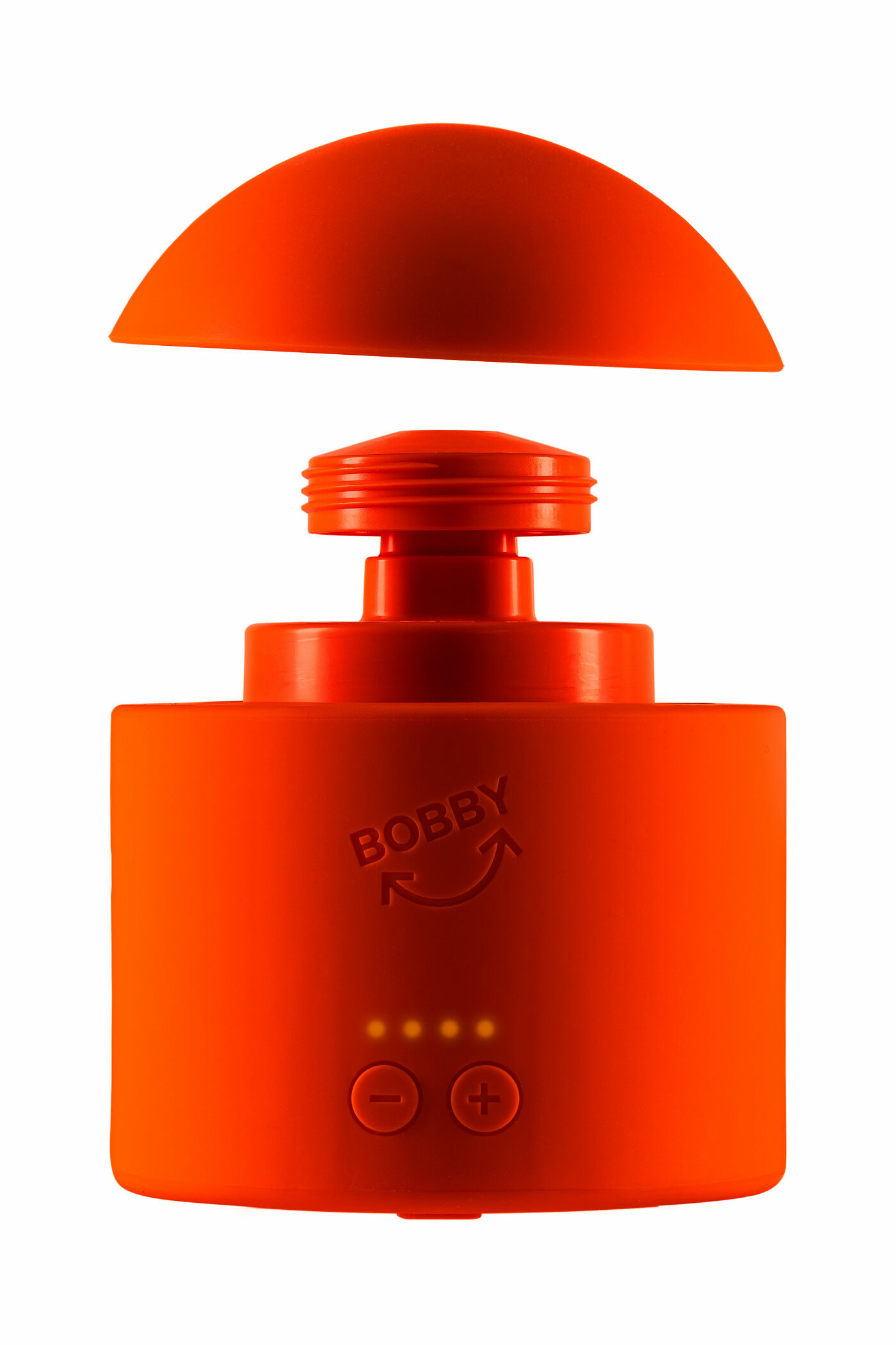 For the design of the product, we created something that appeals to parents. An object you might find in a concept store instead of a baby shop. It's something you wouldn't mind displaying at home or toting to a cafe. We chose orange for the main device color- more on par with high-tech gadgets. Bobby is now available online and ships worldwide.
