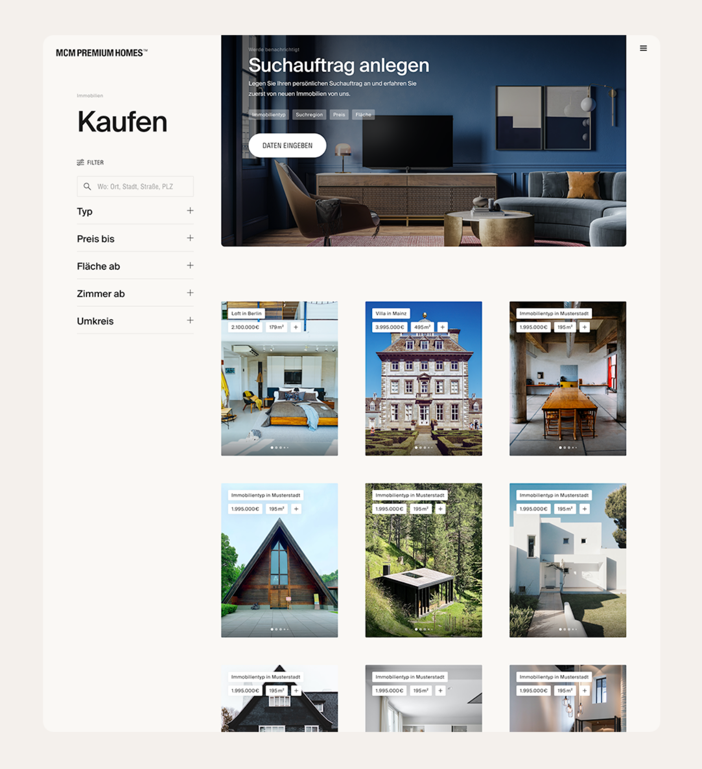 MCM Premium Homes is a subsidiary of McMackler that concentrates on the premium and luxury segments of the real estate market. Given the scarcity and unique nature of the offer, their approach is that of a boutique company powered by the cutting-edge AI tech facilitated by their bigger brother. Simply put: they concentrate on quality rather than quantity. It holds true for both the products and the clientele. They approached us to help them with their new identity and a website that would be their main business and communication tool.